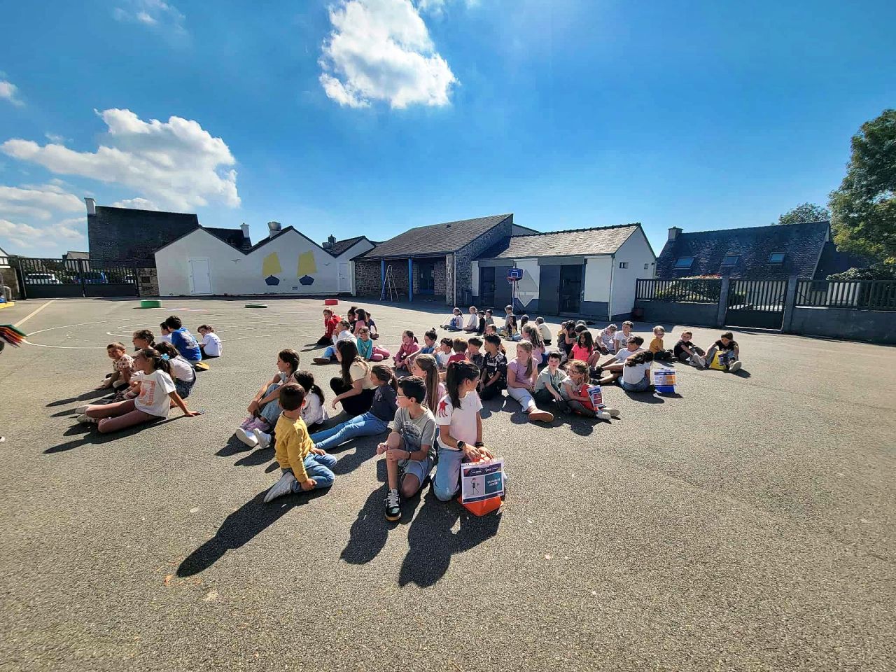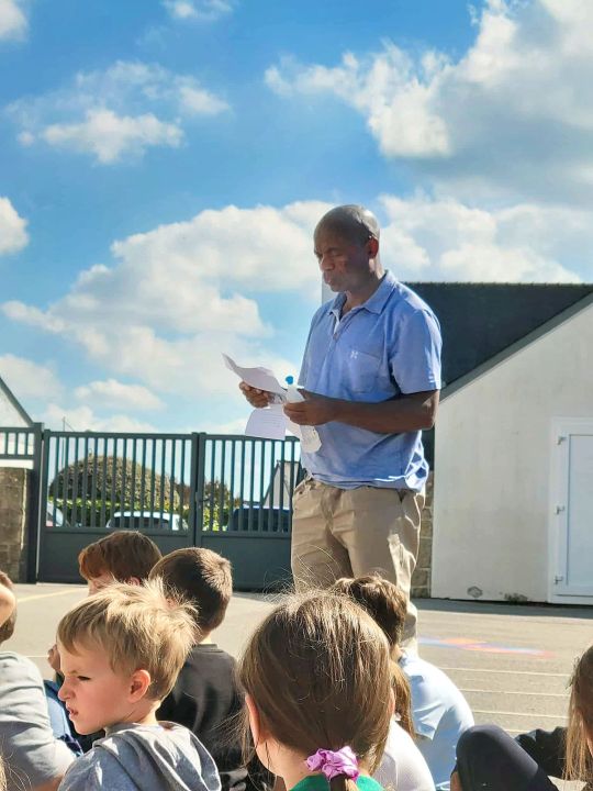 A 13h30, les élèves de la GS au CM2 se sont réunis pour célébrer la rentrée. Le père Firmin est venu pour la bénédiction des cartables.